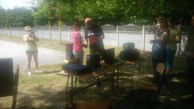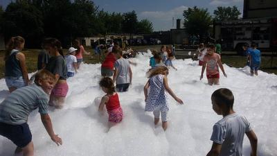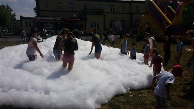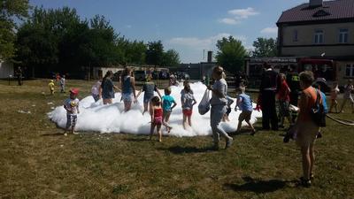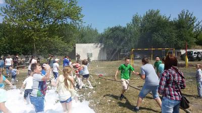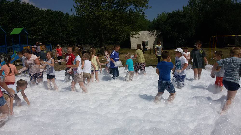 W Szkole Podstawowej we Wroczynach dnia 14 czerwca odbył się festyn rodzinny. Niedzielne popołudnie rodzice i dzieci spędzili na grach i zabawach na terenie szkoły. Mogli sprawdzić swoje umiejętności strzeleckie i sprawnościowe, które przeprowadzili członkowie Stowarzyszenia Pułk 37. Czas umilił występ dziecięcego Zespołu Pieśni i Tańca Ziemi Kutnowskiej. Uczniowie naszej szkoły przygotowali piosenki dla rodziców i dziecięcy pokaz mody. Nad oprawą muzyczną pieczę sprawowali uczniowie klas starszych. Największą atrakcją dla dzieci był dmuchany zamek ze zjeżdżalnią oraz prezentacja sprzętu pożarniczego PSP Kutno. Strażacy zorganizowali "kąpiel" w pianie i wodny prysznic. Miłośnicy słodkości mogli spróbować waty na patyku, a głodni i zmęczeni posilić się kiełbaską i kaszanką z grilla. Oprócz tego oferowano popcorn i zimne napoje.
