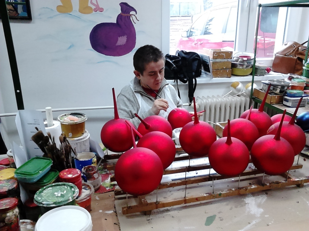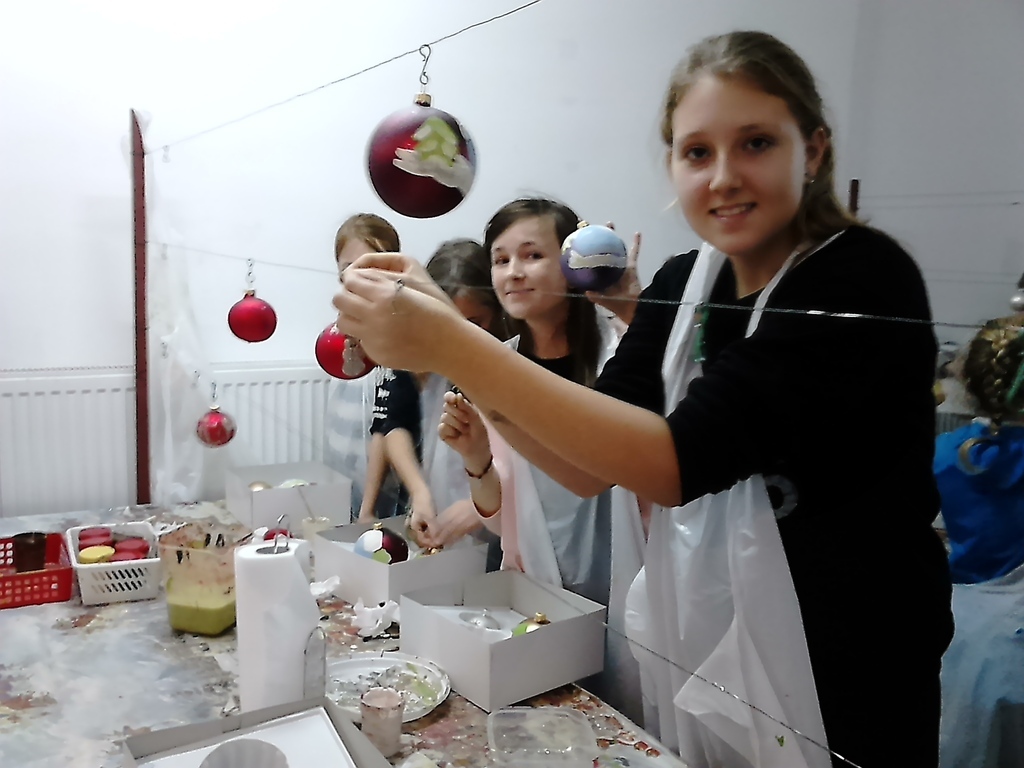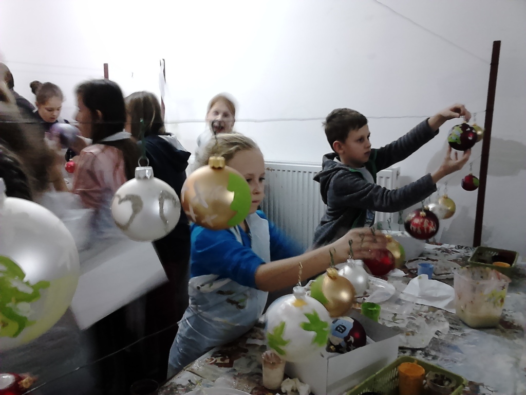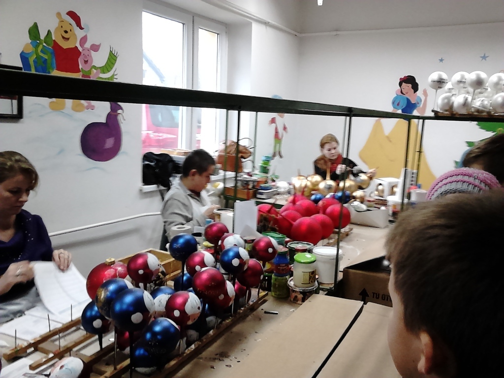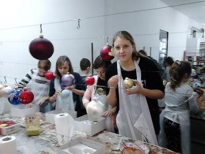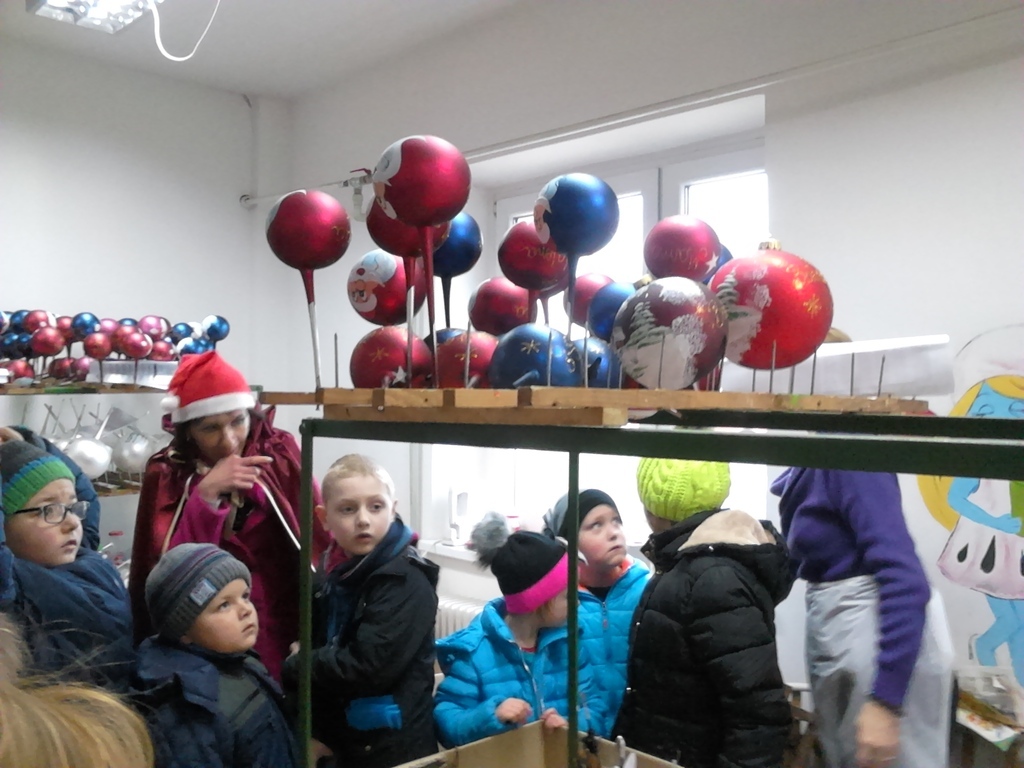Zwiedzili działy: dmuchalnię, srebrzalnię, lakiernię oraz dział dekoracji, obserwując proces podczas którego szklane bombki nabierały wyjątkowego i unikalnego wyglądu.Oprócz tego, dzieci uczestniczyły w warsztatach plastycznych, dekorując własnoręcznie bombki.Nad przebiegiem warsztatów czuwał opiekun plastyczny. Wykonane przez siebie bombki dzieci zabrały do domów, a od producentów otrzymały pamiątkowe bombki ze swoim imieniem. Ponadto nasza szkoła otrzymała certyfikat uzyskania poufnych informacji o ręcznej produkcji ozdób choinkowych.