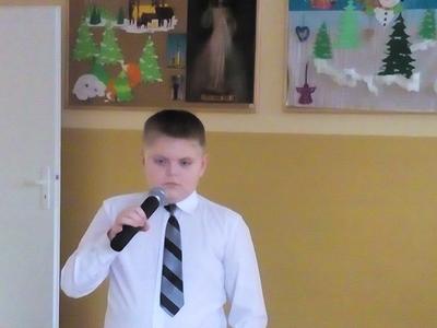 W naszej szkole już po raz kolejny odbył się Przegląd Kolęd i Pastorałek. Przebiegał on w dwóch kategoriach wiekowych : klas 0-III i IV-VI. Uczniowie śpiewali wybraną kolędę lub pastorałkę wspólnie z klasą, indywidualnie lub w zespołach wokalnych. Wszyscy uczestnicy samodzielnie przygotowali ciekawy repertuar, który w sposób szczególny nawiązał do tradycji niedawno obchodzonych Świąt Bożego Narodzenia. Widownia gromkimi oklaskami nagradzała występy oraz podziwiała piękne, karnawałowe stroje poszczególnych wykonawców. Nad sprawnym przebiegiem imprezy czuwała nauczycielka muzyki p. L.Siedlecka. W przygotowaniu przeglądu pomagali również uczniowie Samorządu Szkolnego wraz z opiekunem p. M. Domżał . Na koniec wszyscy śpiewający uczestnicy zostali nagrodzeni słodyczami.