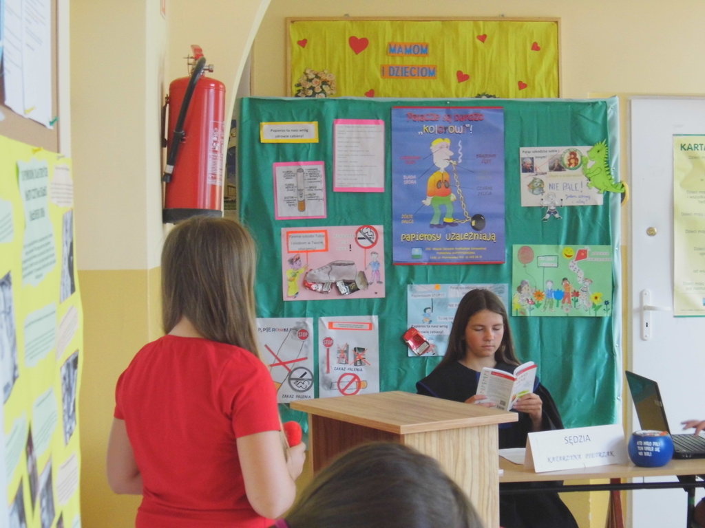 Od grudnia 2015r dzieci z oddziału przedszkolnego realizowały program przedszkolnej edukacji antynikotynowej "Czyste powietrze wokół nas". W ramach programu dzieci uczestniczyły w spotkaniach, wycieczkach. Odbył się cykl zajęć plastycznych i kulinarnych. Podsumowaniem tych działań była inscenizacja "Sąd nad papierosem" , przygotowane przez Panią Dorotę Gralak i uczniów klas 0 - VI.