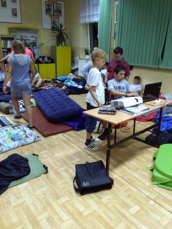 W dniach 16-17 września 2016 r. uczniowie klas IV-VI oraz ubiegłoroczne absolwentki naszej szkoły uczestniczyli w biwaku szkolnym zorganizowanym praz Samorząd Uczniowski pod opieką pani Magdaleny Domżał. Uczniowie mogli wspólnie grać i wykonywać zadania, w których musieli wykazać się szybkością, spostrzegawczością oraz refleksem. Dla nieco zmęczonych osób były przygotowane zadania kreatywne, przy których mogli trochę odpocząć. Absolwenci naszej szkoły również aktywnie uczestniczyli w biwaku. Zorganizowali dla chętnych osób zabawę grupową w terenie. Po trudach związanych z rozgrywkami wszyscy posilili się kiełbaską z grilla oraz zaczęły się przygotowania do wieczornej dyskoteki. Odbył się też konkurs wiedzy ogólnej „OMNIBUS”: