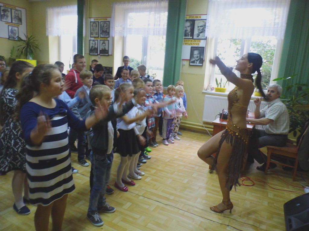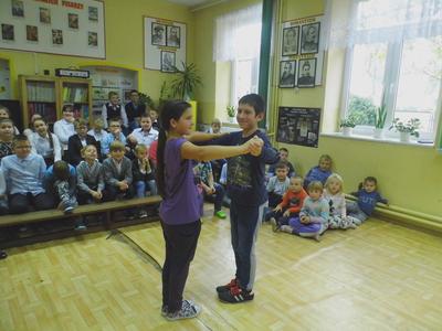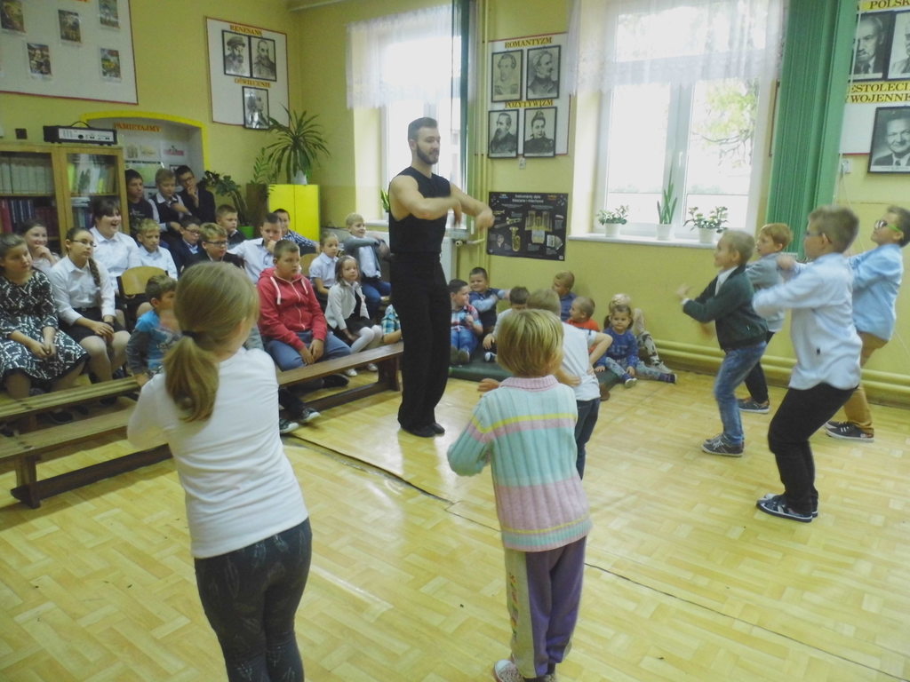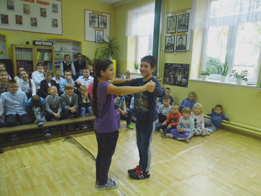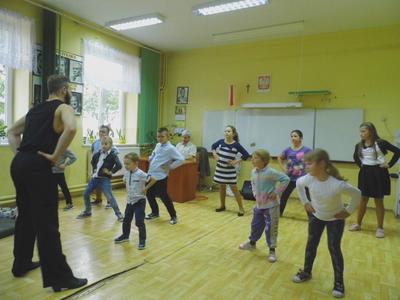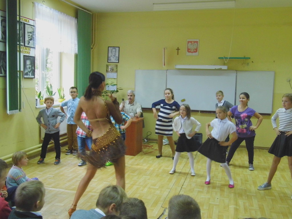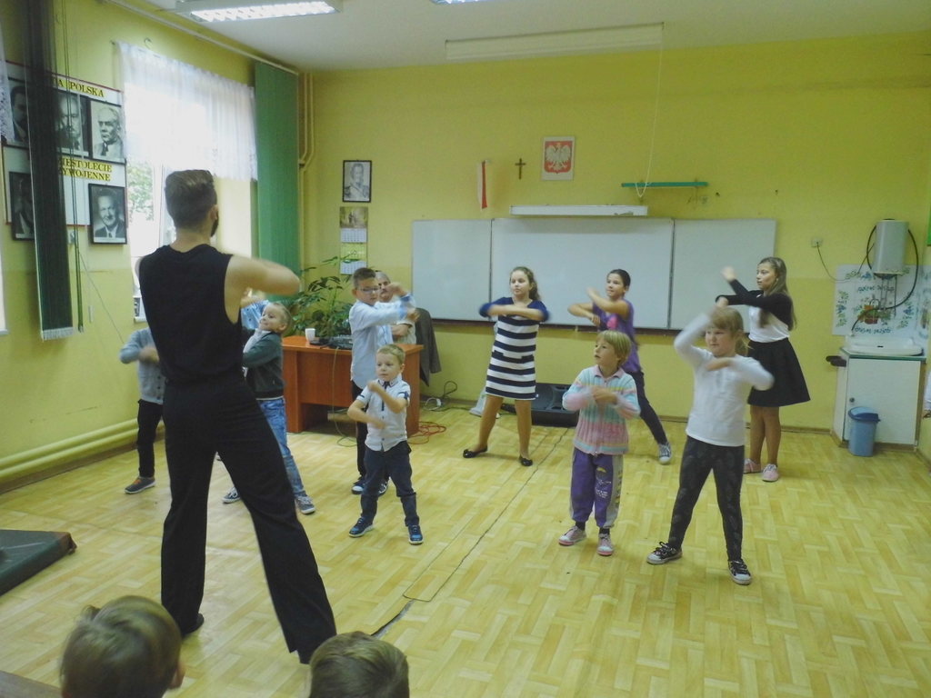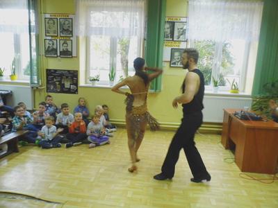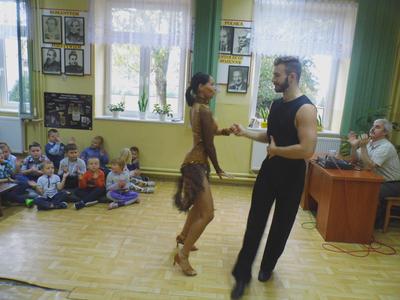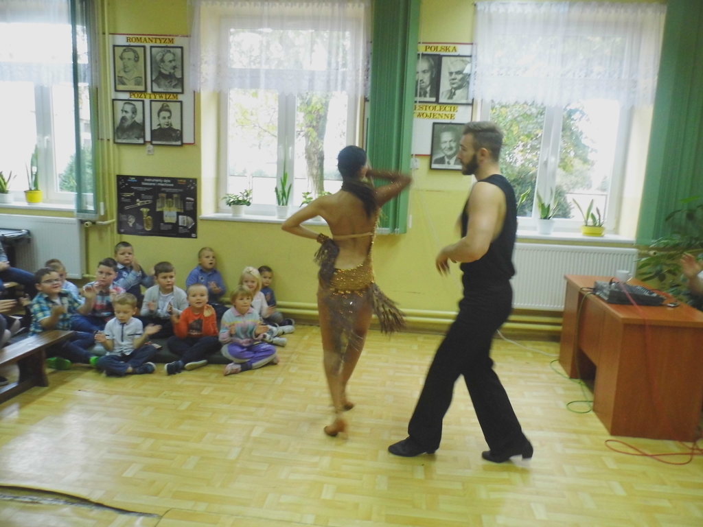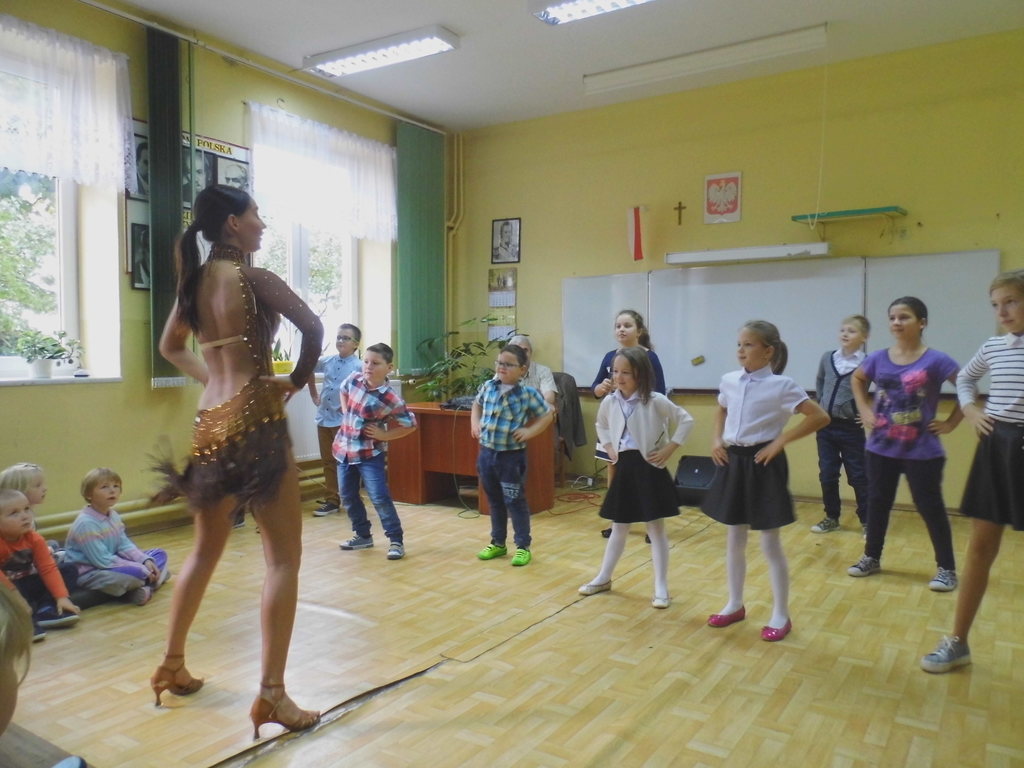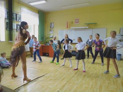 Dnia 13 października 2016r. do naszej szkoły przyjechali tancerze zaprezentować tańce towarzyskie, cza-cza, samba, rumba. Zabawa była wspaniała, gdyż nasze dzieci chętnie brały udział w nauce tańca towarzyskiego, uśmiech nie schodził z twarzy dzieci.