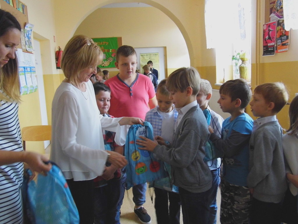 Pani Dyrektor Beata Cieślak rozdała uczniom klasy II i III wyprawki szkolne ufundowane przez Grupę Azoty. Atrakcyjna zawartość wyprawki w postaci kanapnika do własnoręcznego zdobienia wymaga pomysłowości i pobudzenia kreatywności. Dzieciom zawartość wyprawek bardzo przypadła do gustu. Od razu wymieniali się pomysłami na ozdobienie swoich rzeczy. Wyprawka zawierała też piórnik, kredki oraz kamizelki odblaskowe.
