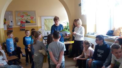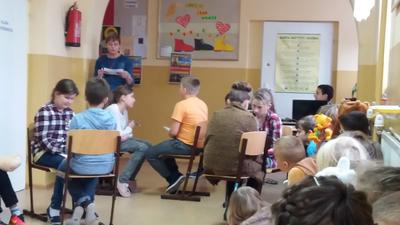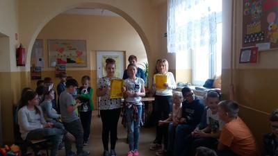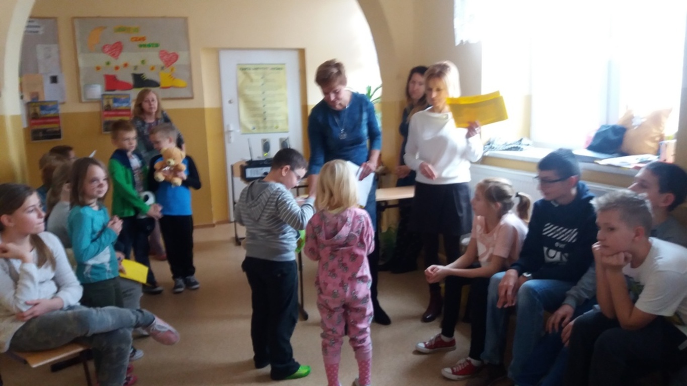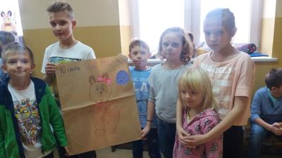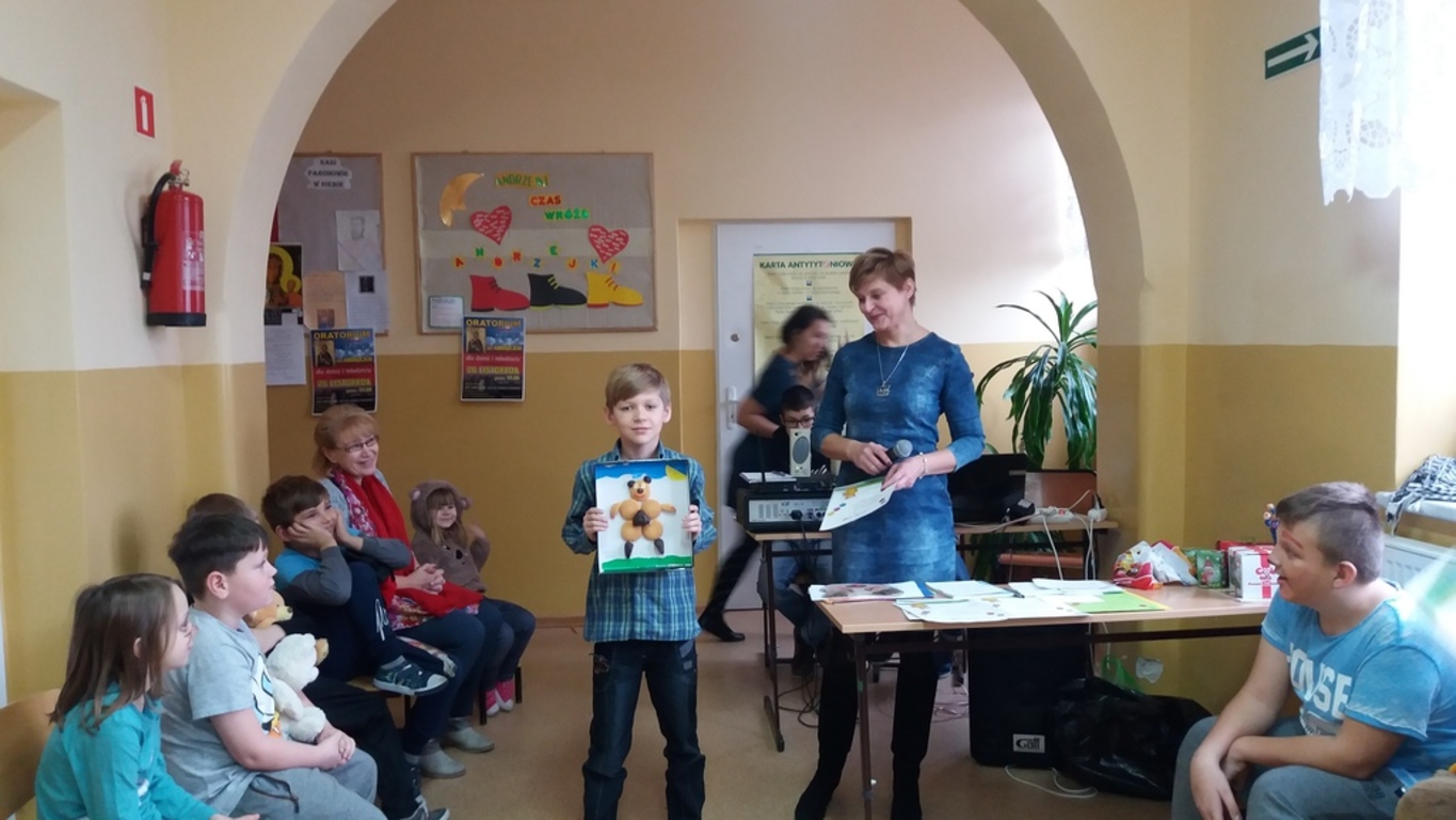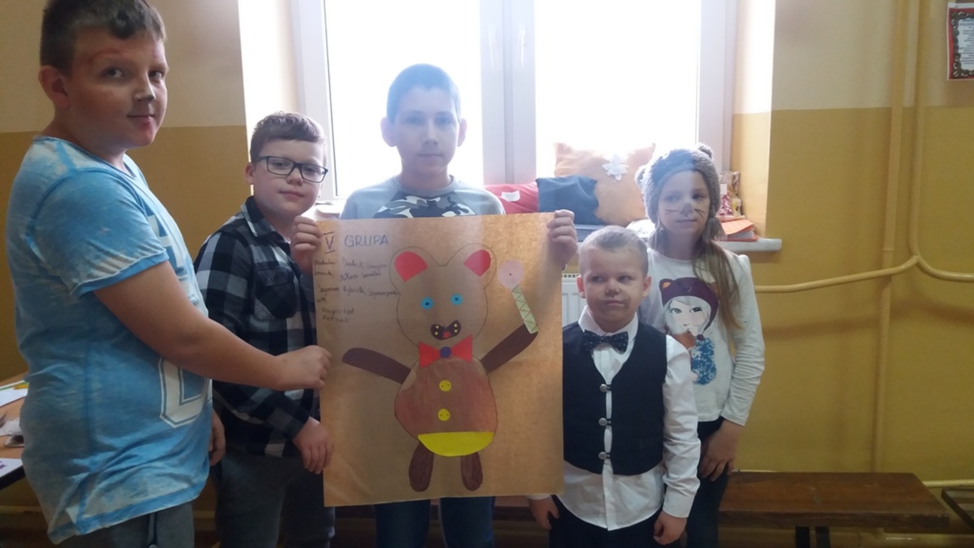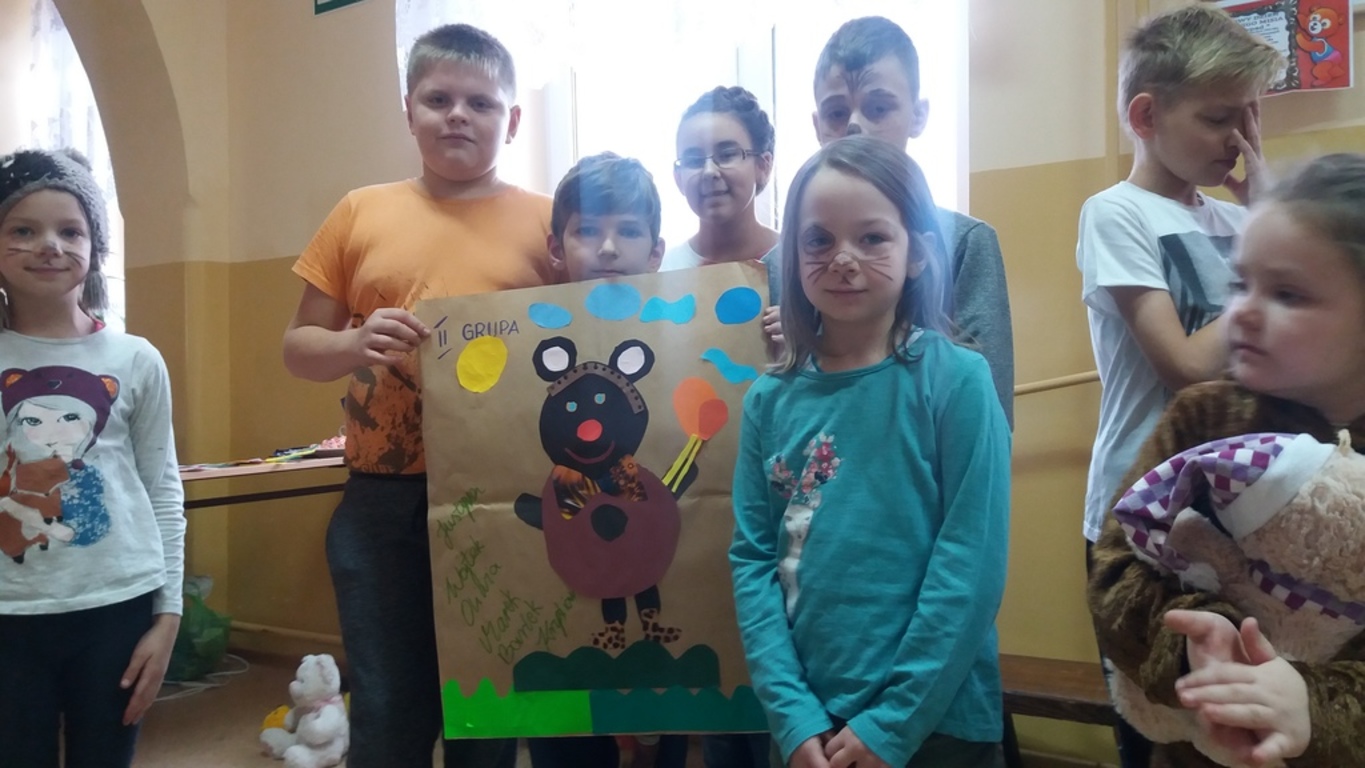 Kolejnym punktem programu była zgaduj - zgadula" Co wiem o misiach" w dwóch kategoriach wiekowych: kl. 0 - III i kl. IV - VI. Następnie odbyło się roztrzygnięcie konkursu plastycznego"Słodki miś" nad którym czuwała pani Lilla Siedlecka.