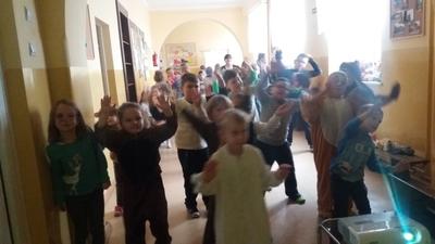Podczas krótkiej dyskoteki z misiem dzieci tańczyły w rytmie ulubionych przebojów.