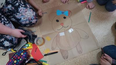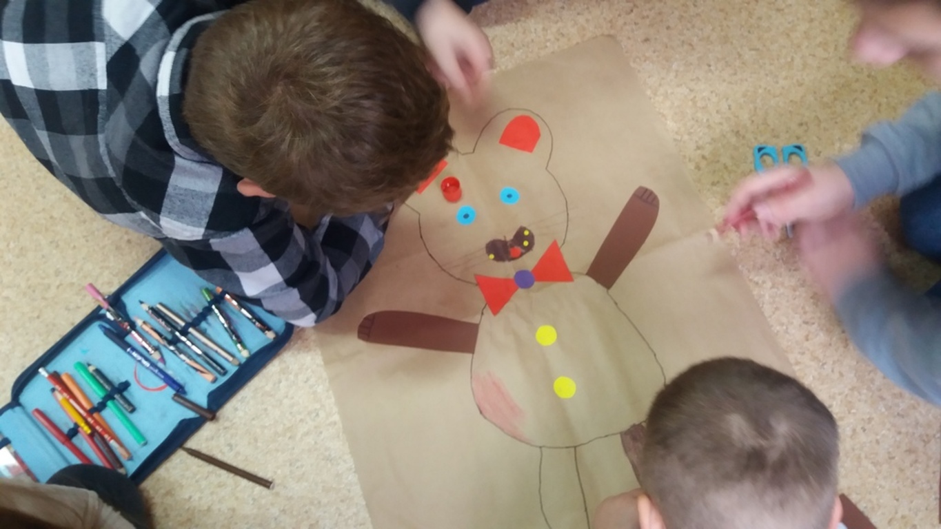 Naszą zabawę urozmaiciły zabawy sprawnościowenp. "Przenieś misia przez rzekę" oraz zabawa plastyczna "Mój przyjaciel miś".