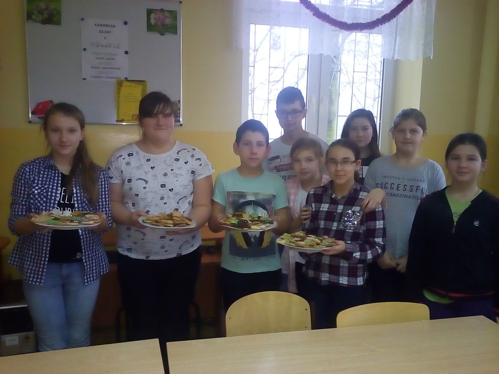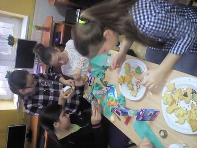 Cudowne zapachy pieczonych ciasteczek unosiły się wczoraj w naszej szkole. A to wszystko za sprawą uczniów klasy 6, którzy pod okiem opiekuna Samorządu Uczniowskiego, pani Magdaleny Domżał, przygotowywali pyszne świąteczne ciasteczka. Pięknie je udekorowali lukrem, polewą oraz posypkami i gotowe ciasteczka mogli zjeść ze smakiem. Uczniowie poczęstowali wypiekami nauczycieli oraz innych uczniów szkoły.