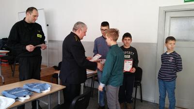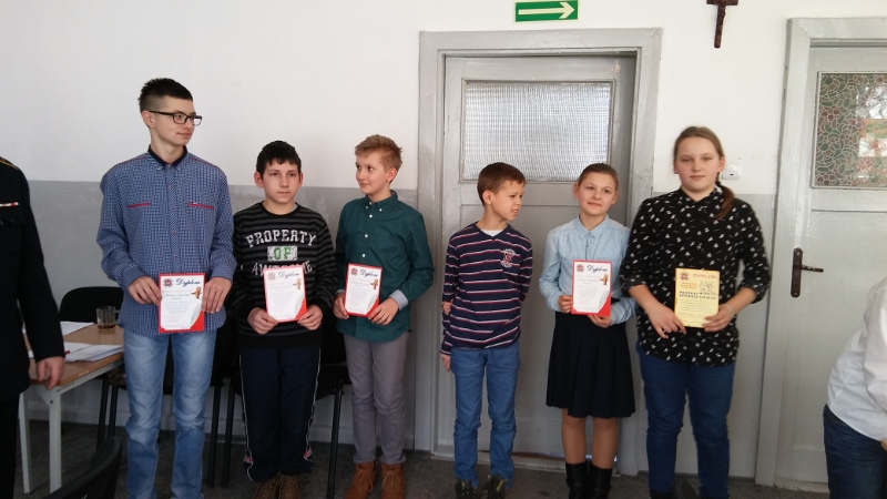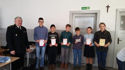 1 marca w GOK w Leszczynku odbyły się gminne eliminacje XL Ogólnopolskiego Turnieju Wiedzy Pożarniczej - „Młodzież zapobiega pożarom”. Naszą szkołę zaprezentowali": Wojciech Borkowski, Krzysztof Pietrzak, Szymon Banasiak.