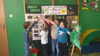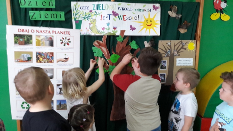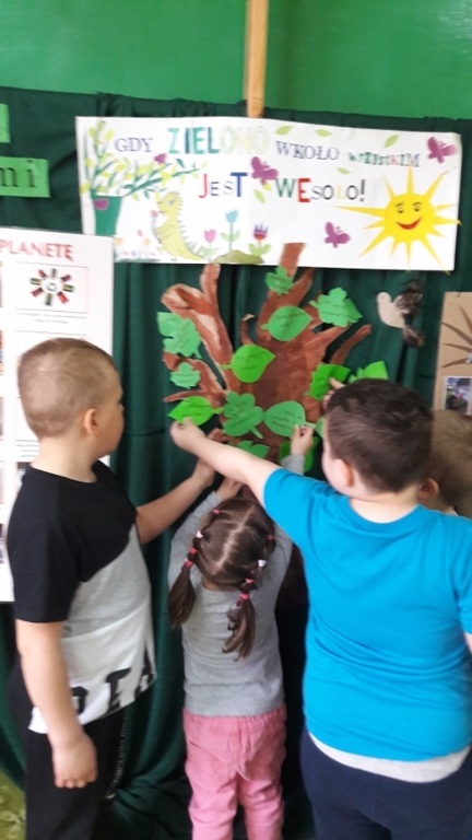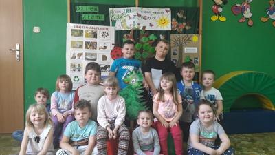 Przedszkolaki dobrze wiedzą jak dbać o naszą Planetę – Ziemię i to nie tylko z okazji jej święta ale również na co dzień. Dzieci na listkach umieściły swoje postanowienia i stworzyły zielone drzewko. Zachęcamy wszystkich do przestrzegania tych zasad. Będzie to najwspanialszy prezent dla naszej Planety. Każdy przedszkolak otrzymał miano Małego Strażnika Przyrody.