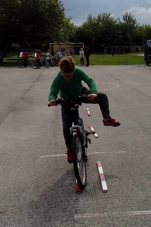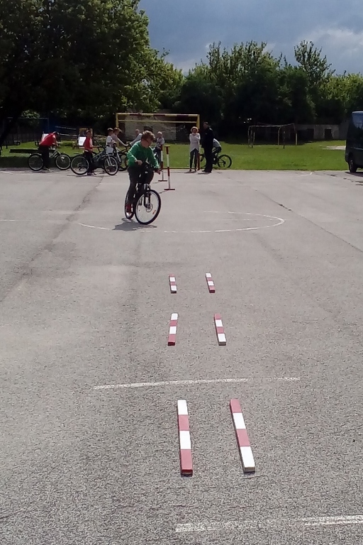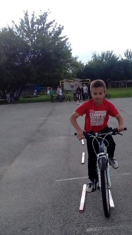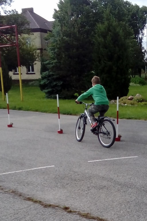 W dniu 13 czerwca 2017r. uczniowie naszej szkoły mogli sprawdzić swoje umiejętności jazdy rowerem. Najpierw uczniowie klasy IV obejrzeli film, w którym zostały przypomniane podstawowe pojęcia, znaki, zasady poruszania się po drodze. Następnie odbyła się część praktyczna - jazda rowerem z wykorzystaniem wszystkich zasad ruchu drogowego.