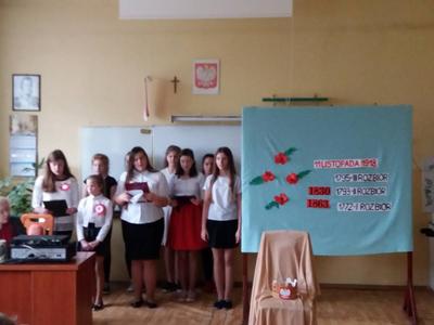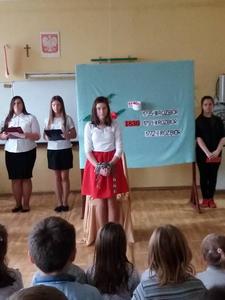 Uczennica J.Miażdżyk poinformowała o 150 rocznicy urodzin Marszałka Józefa Piłsudskiego oraz 200 rocznicy śmierci Tadeusza Kościuszki. Wybitni Polacy walczyli o wolność Polski, znaleźli się w patronie naszych bohaterów narodowych.