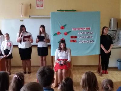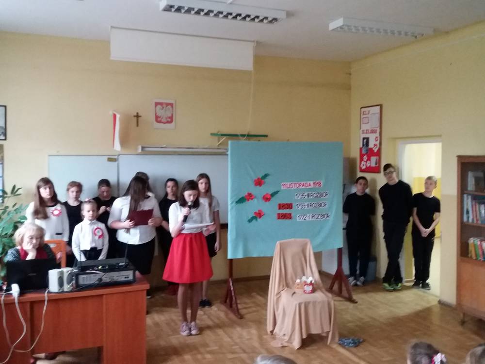 W naszej szkole odbyła się akademia upamiętniającą Narodowe Święto Niepodległości. Dzień ważny dla Narodu, dla naszego Państwa! Po 123 latach nieistnienia Polska odwiedziła się jako państwo wolne, niepodległe. Uczniowie przedstawili scenkę dramatyczną ukazującą dzieje narodu i państwa: utratę niepodległości, powstania i odrodzenie Polski. Podniosły nastrój podkreślił pieśni i melodie patriotyczne.