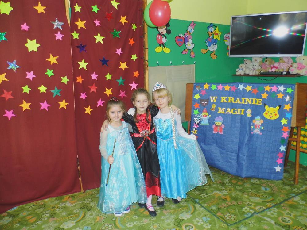 25 stycznia 2018 w oddziale przedszkolnym odbył się karnawałowy bal przebierańców ,,W krainie magii". Przybyły na niego wróżki, księżniczki, piraci i inni goście. Stroje dla dzieci przygotowali oczywiście rodzice. Dzieci wesoło bawiły się przy karnawałowych hitach. Było mini-karaoke oraz wizyta wróżki Zuzanny, która przepowiadała najbliższą przyszłość. Dzieci mogły dotknąć magicznej kuli i wypowiedzieć swoje marzenie. Rodzice przygotowali również słodki poczęstunek i napoje, które gasiły pragnienie po szalonej zabawie. Na koniec wybraliśmy Króla i Królową balu. Królową została Maja Wawrzyńczak, a królem Szymon Domański. Naszą zabawę uwieczniliśmy na zdjęciach. Zapraszamy do obejrzenia :-)