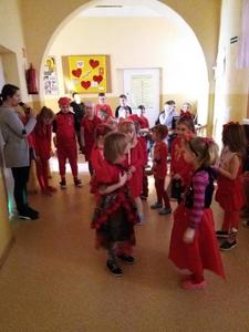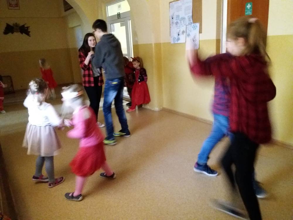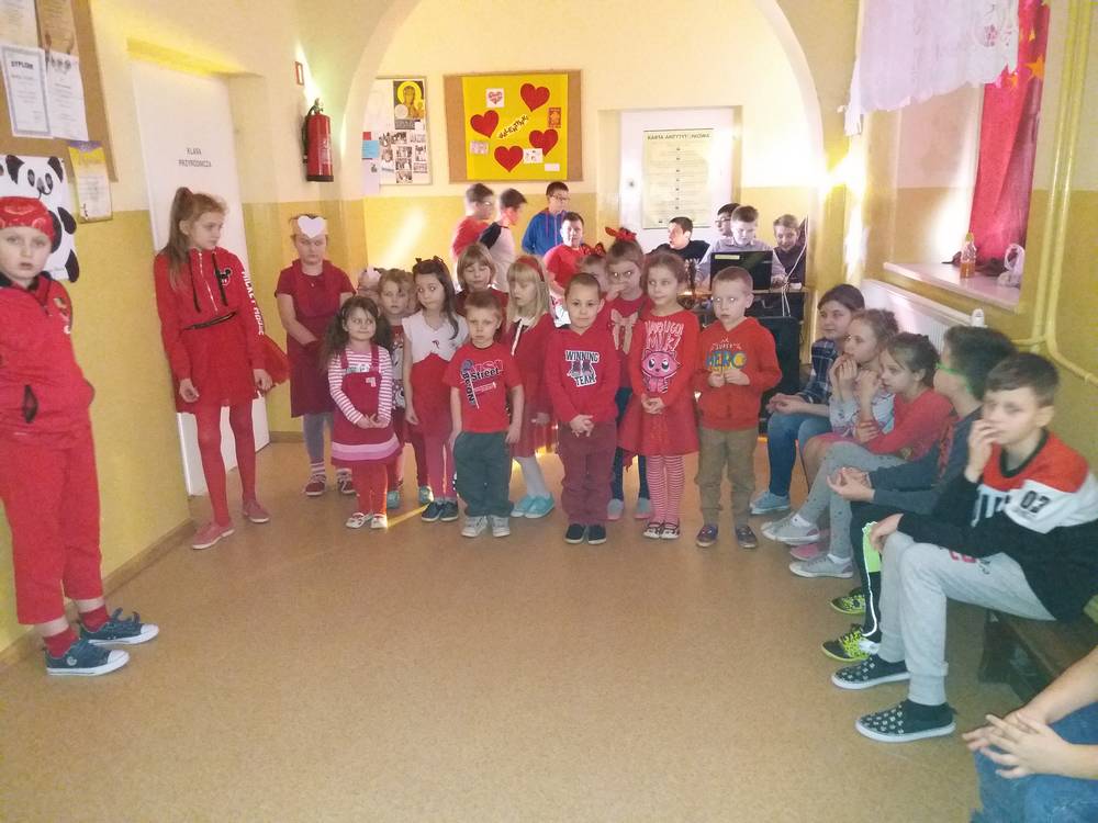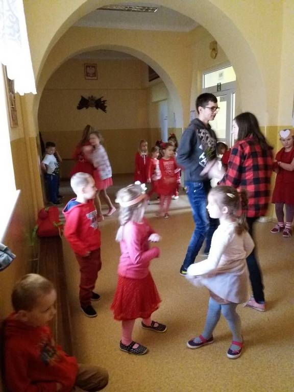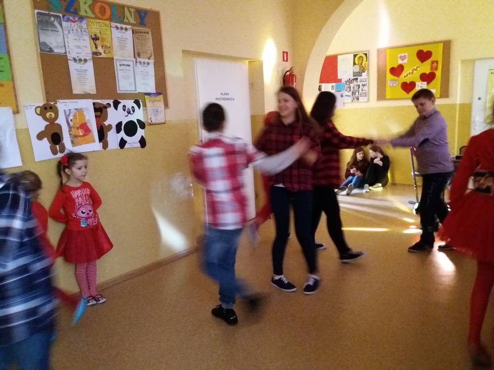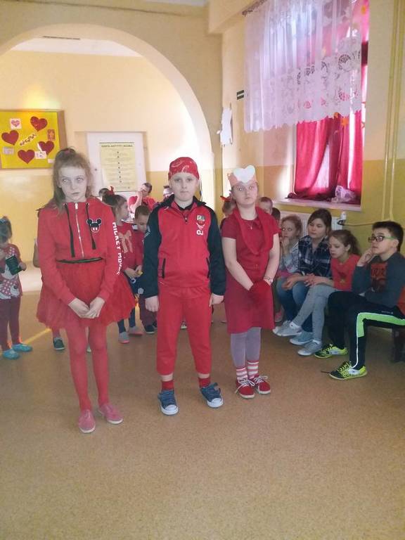 13 lutego obchodziliśmy walentynki w naszej szkole. Tradycyjnie świętowanie rozpoczęliśmy od poczty walentynkowej, następnie chętne osoby wyrecytowały wiersze o tematyce miłosnej, walentynkowej. Całą szkołą zawładnął kolor czerwony bowiem każdy miał mieć w swoim ubiorze coś w tym kolorze, a osoba z największą ilością czerwonych rzeczy miała dostać upominek. Ostatecznie nagrody otrzymało kilkanaście osób jakoże wszystkie te osoby od stóp do głów były ubrane na czerwono. Świętowanie zakończyło się dyskoteką, na której wszyscy świetnie się bawili.