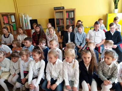 Uczniowie z zainteresowaniem wysłuchali odczytywanego tekstu oraz wierszy i piosenek patriotycznych. Atmosferę tamtych chwil przybliżyła im scenka, którą zaprezentowali uczniowie w strojach z epoki. Podczas ostatniej piosenki dzieci uniosły w górę polskie flagi, podkreślając podniosłą atmosferę akademii.