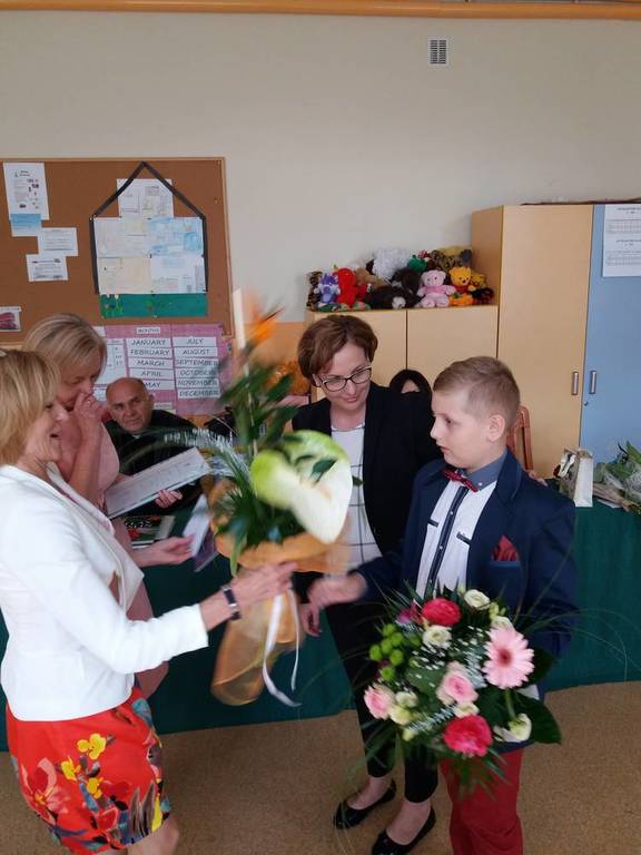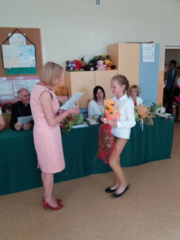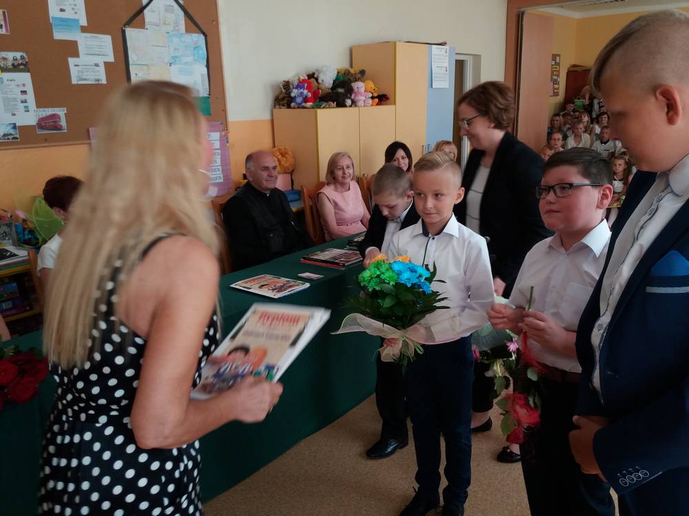 22 czerwca 2018r. spotkaliśmy się wszyscy uśmiechnięci, by pożegnać czas nauki i wysiłku, a rozpocząć okres swobody oraz zabawy. Najmłodsi otrzymali dyplomy ukończenia oddziału przedszkonego, dyplomy super przedszkolaka oraz drobne upominki. Starsi uczniowie otrzymali świadectwa ukończenia danej klasy, najlepsi wśród nich - nagrody książkowe, a niektórzy również finansowe stypendia naukowe. Pani dyrektor podziękowała uczniom, nauczycielom oraz pracownikom szkoły za wysiłek i trud włożony w pracę szkoły. Nie mogło zabraknąć szczególnych podziękowań dla rodziców, którzy wspierają w różny sposób przedsięwzięcia szkolne. Życzymy wszystkim udanych wakacji i do zobaczenia we wrześniu.