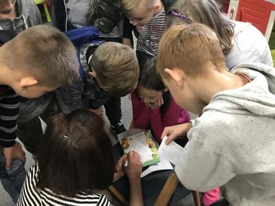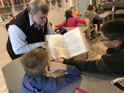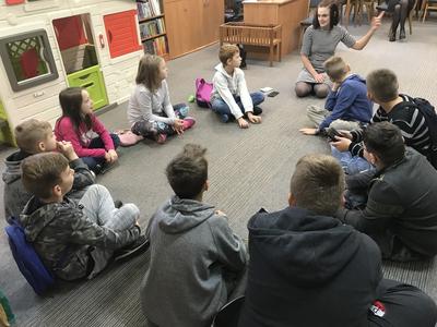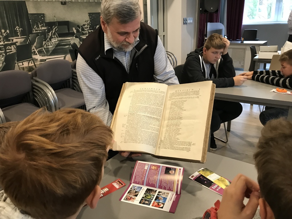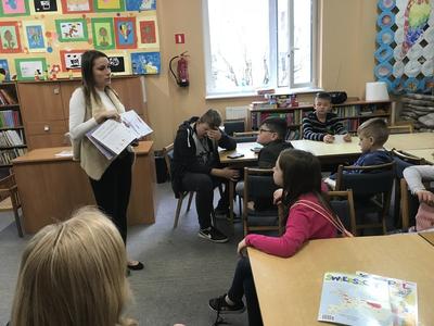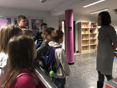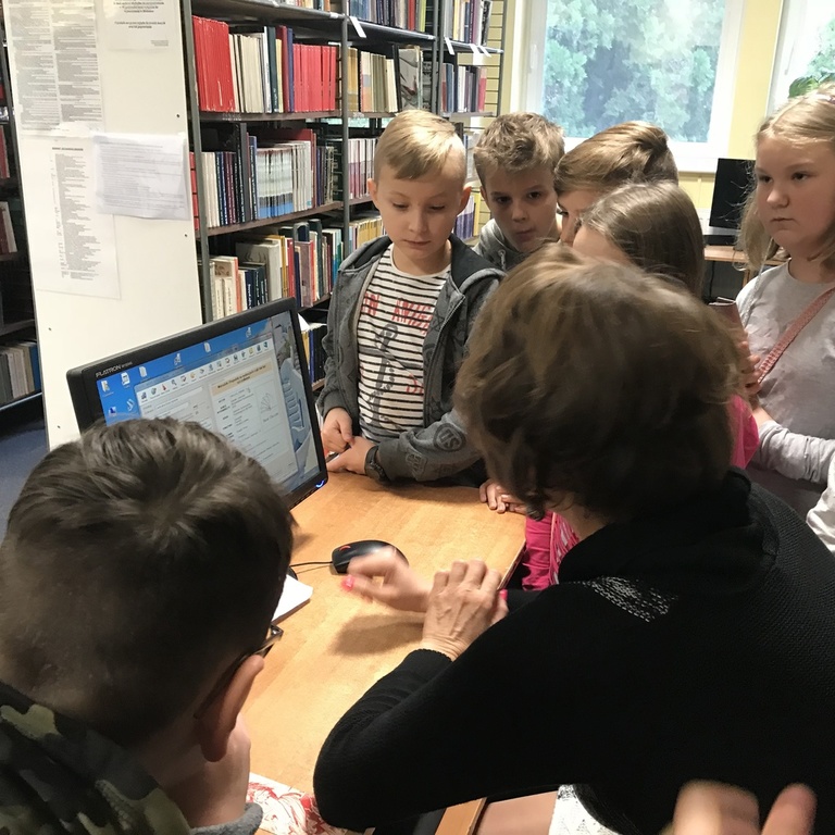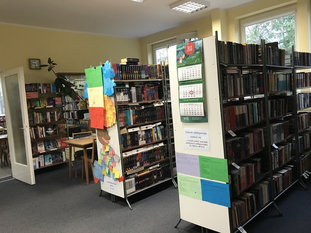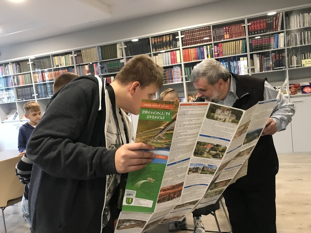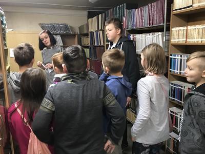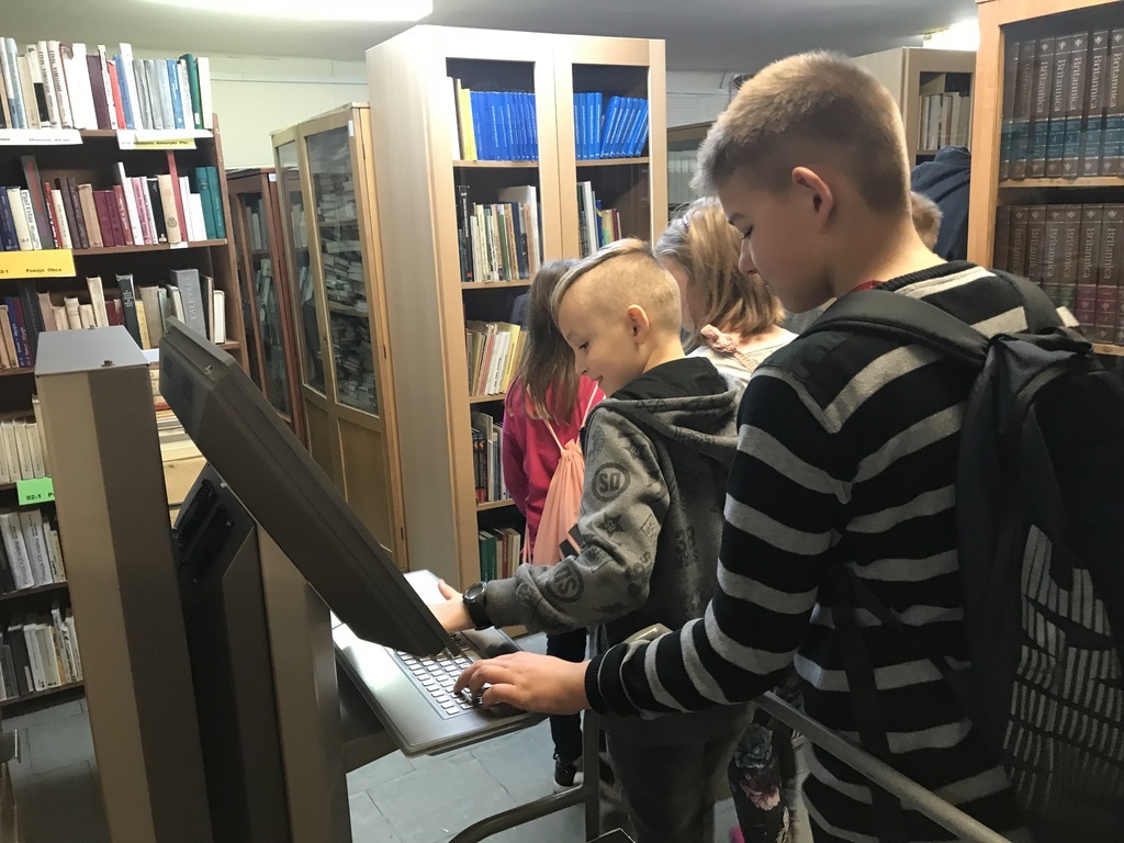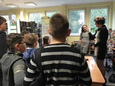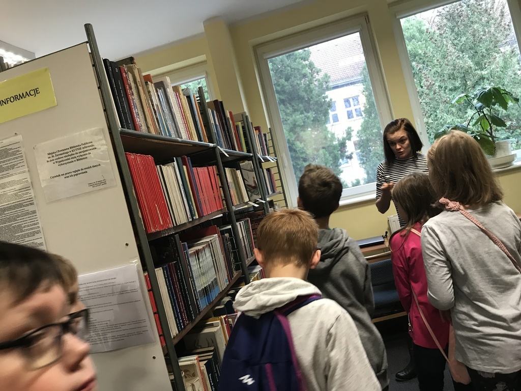 W pierwszej kolejności odwiedzili Miejską i Powiatową Bibliotekę Publiczną w Kutnie, gdzie zapoznali się z jej organizacją i funkcjonowaniem. Zwiedzili podstawowe działy biblioteki. W wypożyczalni dla dzieci i młodzieży uczestniczyli w lekcji bibliotecznej przygotowanej przez pracownice biblioteki. Niezapomniane wrażenie wywarły na uczniach regionalne zbiory biblioteczne, które w bardzo atrakcyjny sposób zaprezentował pan Andrzej Olewnik – regionalista.