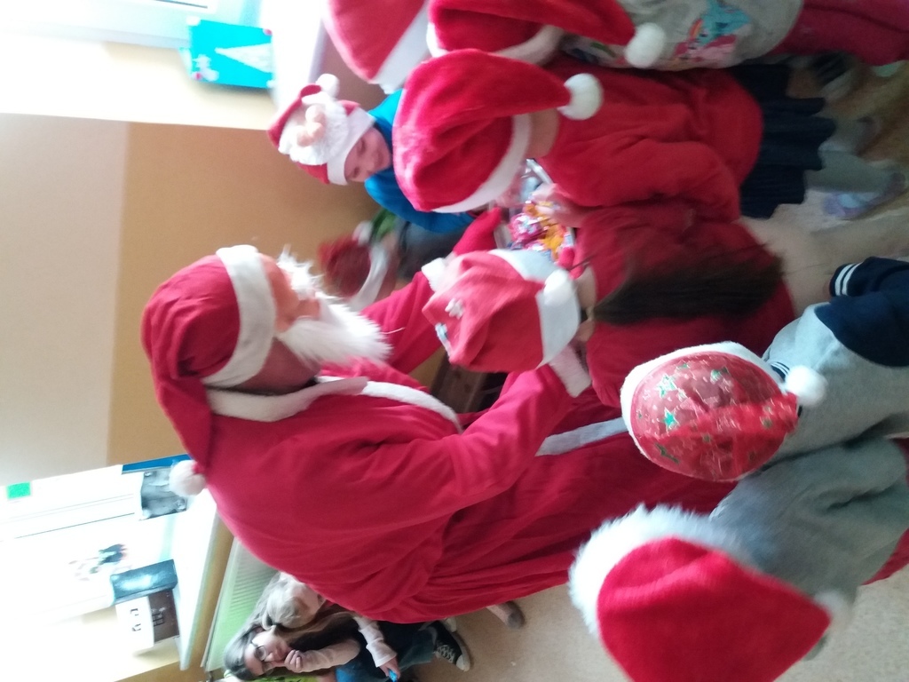 Przedszkolaki miały w czwartek wyjątkowego gościa. Był nim Św. Mikołaj, z którym spędziły miłe chwile. Dzieci złożyły Mikołajowi życzenia imieninowe i zaśpiewały 100 lat. Śpiewały piosenki, mówiły wiersze, nie zabrakło pamiątkowych zdjęć. Na pożegnanie dzieci otrzymały słodycze od swojego gościa i złożyły życzenia świąteczne.