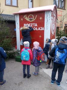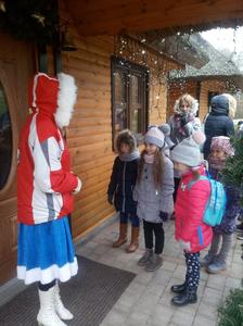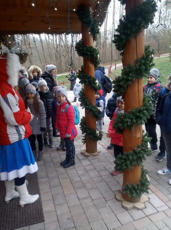 23.11.2018 uczniowie klas 0,I,II,IV wzięli udział w wycieczce do Krainy Św. Mikołaja w Kołacinku. Na miejscu powitała nas przemiła Śnieżynka, która oprowadziła nas po bajkowej ścieżce, opowiadając znane bajki i przedstawiając ich bohaterów. Następnie udaliśmy się do domu Dziadka Mroza, który oprowadził nas po swojej chacie, opowiedział o swojej rodzinie i zrobił z nami pamiątkowe zdjęcie. Kolejną atrakcją były warsztaty plastyczne, na których dzieci robiły ozdoby choinkowe wykazując się swoimi umiejętnościami manualnymi. Obejrzeliśmy również bajkę o fabryce zabawek Mikołaja. Jednak to nie koniec atrakcji, dalej ruszyliśmy do Sali Tronowej, gdzie czekał na nas Mikołaj ze swoją Śnieżynką. Wszystkie dzieci zostały obdarowane prezentami. Nadszedł czas na chwilę wytchnienia. Udaliśmy się do wielkiego namiotu, w którym wszyscy mogliśmy wypić ciepłą herbatę, posilić się i kupić pamiątki. Ostatnim punktem naszej wycieczki były pamiątkowe zdjęcia z Mikołajem i zabawy w Figloraju. Niestety czas pobytu w Krainie Św. Mikołaja dobiegł końca. Na pożegnanie dostaliśmy od organizatorów batoniki, krzyżówki i pamiątkową maskotkę. Cała nasza wyprawa została uwieczniona na zdjęciach. Pełni wrażeń wróciliśmy do domu.