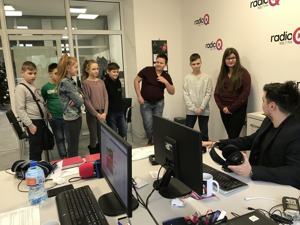 W lokalnej rozgłośni, która powstała niespełna pół roku temu, ale zdecydowanie podbiła rynek lokalnych mediów, podpatrywali pracę dziennikarzy, próbowali swoich sił przy mikrofonie, zajrzeli do newsroomu, w którym każdego dnia powstają serwisy informacyjne oraz zrobili sobie pamiątkowe zdjęcie w studio. Na zakończenie spotkania każdy słuchacz otrzymał pamiątkowe gadżety Radia Q.