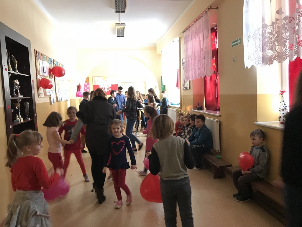 Nieco wcześniej, bo już 7 lutego obchodziliśmy w naszej szkole WALENTYNKI. Nasi uczniowie również poddali się atmosferze Walentynek i dzięki ,,walentynkowej poczcie", zorganizowanej przez Samorząd Uczniowski, mogli przesłać życzenia swojej sympatii. Zebrane wcześniej do specjalnej skrzynki kartki walentynkowe zostały rozdane przez pomocnice Kupidyna-uczennice klasy 8. Dzień ten był również dniem, w którym obowiązywał czerwony kolor na różne sposoby. Następnie z okazji Walentynek wszyscy świetnie bawili się na szkolnej dyskotece.