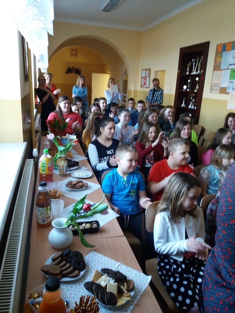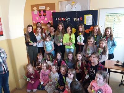 Na zakończenie panowie złożyli najserdeczniejsze życzenia z okazji Dnia Kobiet oraz wręczyli kwiaty, które niezmiennie kojarzą się z tym świętem. Nie zabrakło również słodkości przygotowanych przez chłopców z SU.