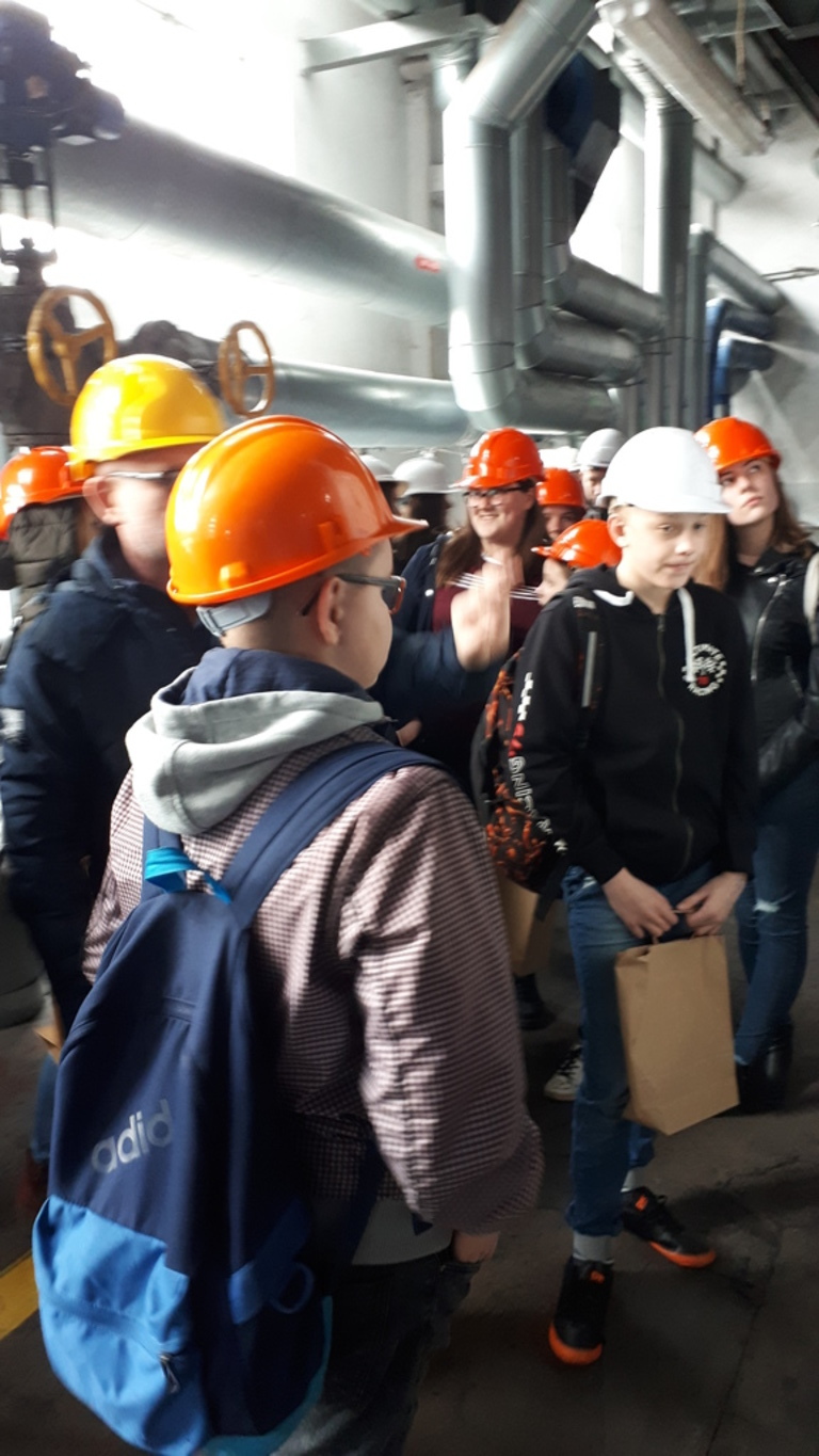 Kolejnym punktem wycieczki była wizyta w Elektrociepłowni w Kutnie. Uczniowie mieli okazję zobaczyć jak pracuje elektrociepłownia oraz przyjrzeć się systemowi ogrzewania mieszkań w Kutnie.