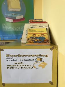 Od 24 kwietnia działa w naszej szkole półka bookcrossingowa, mieszcząca się w sali polonistycznej obok biblioteki szkolnej. Każdy uczeń może wziąć z półki dowolną książkę, a po przeczytaniu oddać ją lub wymienić na stałe, pozostawiając swoją własność.
