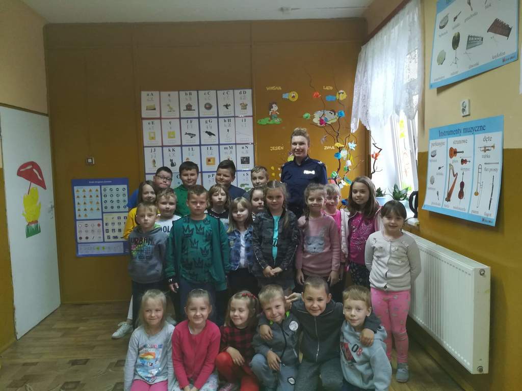 Pani policjant poruszyła temat bezpieczeństwa jakie trzeba zachować w drodze do i ze szkoły oraz poza miejscem zamieszkania. Nawiązała również do zasad bezpiecznej jazdy na rowerze, przypominając jak ważną rolę pełnią elementy odblaskowe.