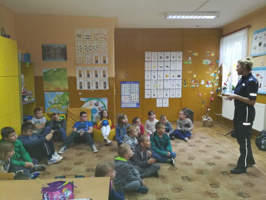 Prowadząca odniosła się do niebezpieczeństw, jakie mogą spotkać dzieci w kontaktach z obcymi. Ponadto uświadomiła zagrożenia wynikające z nieumiejetnego korzystania z internetu, telefonów komórkowych. Na zakończenie dzieci miały możliwość zaspokoić swoją ciekawość, zadając pytania.