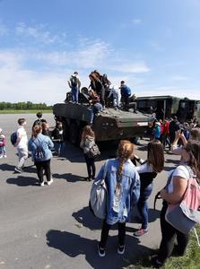 Dzieci zwiedzanie rozpoczęli od podziwiania śmigłowców, wozów bojowych oraz innego ciężkiego sprzętu wojskowego. Każdy z uczestników mógł zapoznać się ze specyfiką danego sprzętu, zasiąść za sterami czy też podziwiać z daleka jego możliwości.