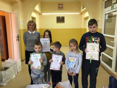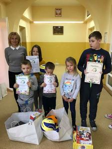 8 stycznia dyrektor szkoły przekazała nagrody, które szkoła i oddział przedszkolny otrzymali za udział w zbiórce surowców wtórnych. Wszystkim, którzy wzięli udział w tegorocznym konkursie dziękujemy. Mamy nadzieję, że za rok również nie zabraknie chętnych.