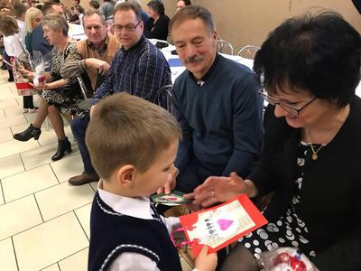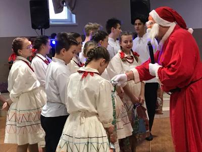Imprezę rozpoczęły występy szkolnych artystów, którzy przygotowali montaż słowno-muzyczny dla swoich babć i dziadków. Gościnnie wystąpił Zespół Pieśni i Tańca Ziemi Kutnowskiej, który zaprezentował fragment z Janowej nocki-puszczanie wianków. Nie zabrakło również Świętego Mikołaja, który wręczył dzieciom upominki przygotowane przez Radę Rodziców.