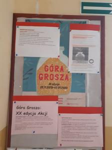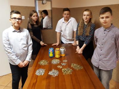 11 stycznia, podczas trwania balu karnawałowego oraz obchodów Dnia Babci i Dziadka, wolontariusze naszej szkoły zorganizowali zbiórkę pieniędzy na pomoc dzieciom, które wychowują się poza własną rodziną i przebywają w opiece zastępczej. Zebrane pieniądze pozwalają na tworzenie programów, które pozwolą im spokojnie dorastać. Organizatorem XX-letniej już akcji „Góra Grosza” jest Towarzystwo „Nasz dom”. Uczniowie klasy siódmej: Mateusz Stolarski, Kuba Pawlak, Weronika Marciniak, Weronika Sobczyk i Bartek Szczepański oraz Natalia Drabik z klasy ósmej, przygotowali atrakcyjne puszki, zebrali oraz przeliczyli monety. Zebrana suma to: 221 złotych oraz 86 groszy.
