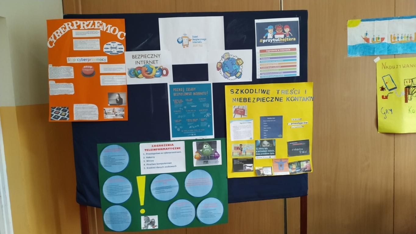 Internet jest nieodłącznym narzędziem w naszym codziennym życiu. Dzięki niemu poznajemy świat, łatwiej się komunikujemy, zdobywamy wiedzę. Sieć Internet dostarcza nam również wiele rozrywki. Wykorzystujemy go również by budować własny wizerunek oraz niewątpliwie ułatwia nam codzienne. Mimo wielu możliwości jakie stwarza, jest również źródłem różnych niebezpieczeństw: cyberprzemoc, niebezpieczne kontakty, szkodliwe treści, nadużywanie Internetu (uzależnienie) oraz zagrożenia technologiczne, szczególnie wirusy oraz wykradanie danych. 11 lutego uczniowie naszej szkoły włączyli się do obchodów światowego Dnia Bezpiecznego Internetu. Była to okazja by przypomnieć o konsekwencjach nadużywania Internetu i czyhających na nas niebezpieczeństwach. Każda klasa przygotowała kolorowe plakaty pokazujące poszczególne zagrożenia. Przedstawiciele klas omówili przygotowane zagadnienia. Pani Emilia Banach zorganizowała i przeprowadziła dla klas V –VIII piknik edukacyjny pt. „Internet bez hejtu”. Uczniowie podzieleni na grupy rywalizowali w różnych konkurencjach: zadaniach – tzw. misjach kształtujących logiczne rozumowanie oraz rozsypankach wyrazowych, w wyniku których młodzież zwiększyła świadomość problemu obrażania w sieci, prezentowała sposoby reagowania oraz kształtowała i promowała postawy empatyczne. Uczniom najbardziej podobała się konkurencja, w której po wylosowaniu pytania poszczególne osoby z grupy odpowiadały na pytania dotyczące bezpieczeństwa w sieci. Zastosowane metody aktywizujące, w tym wykorzystanie tablicy aktywnej okazały się ciekawe dla uczniów i niewątpliwie przyczynią się do zapamiętania omawianych zagadnień.
