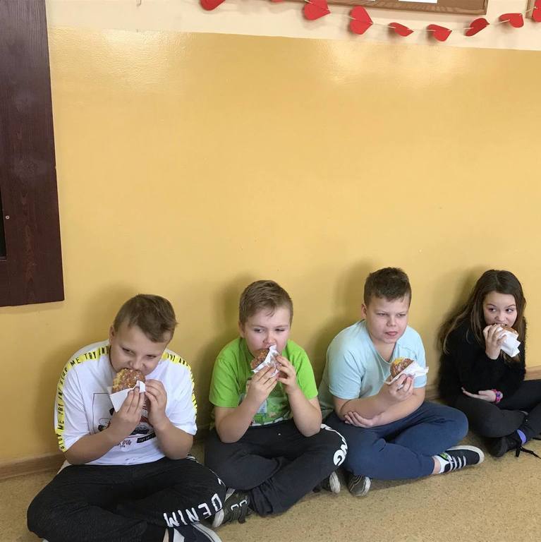 Wszyscy uczniowie i pracownicy szkoły obchodzili tłusty czwartek zgodnie z tradycją, kosztując słodkości. Pączki błyskawicznie znikały, co świadczy o tym, jak były pyszne!