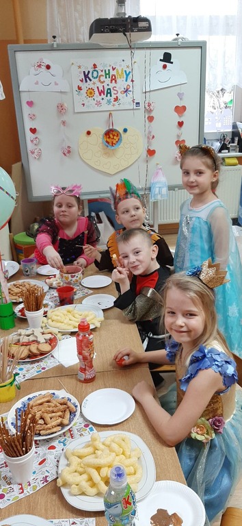 Uczniowie zerówki karnawał zakończyli balem kostiumowym.Przed rozpoczęciem zabawy nastąpiło wręczenie Walentynek, które dzieci przygotowały. Później dzieci prezentowały swoje stroje, o które zadbali oczywiście rodzice. Zabawę umilała muzyka, konkursy, różne gry, zabawy oraz stół z napojami i drobnymi przekąskami. Nie zabrakło pamiątkowych zdjęć , które chcemy Wam pokazać.