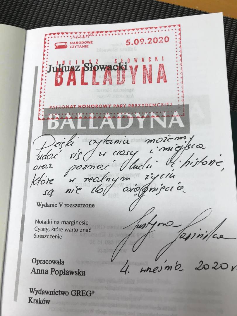 Dziś w sali polonistycznej i na boisku szkolnym odbyło się NARODOWE CZYTANIE „Balladyny” J. Słowackiego. Tym samym nasza szkoła aktywnie włączyła się ogólnopolską akcję organizowaną przez Prezydenta RP od 2012 roku.