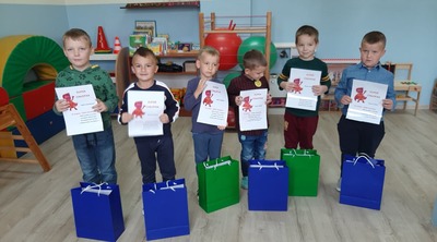 W oddziale przedszkolnym dziewczynki złożyły kolegom życzenia i wręczyły upominki i słodycze zakupione przez rodziców. Każdy chłopiec otrzymał również certyfikat SUPER CHŁOPAKA. Dziewczynki dostały także drobne upominki. Korzystając z ładnej pogody dzień umiliły nam zabawy na świeżym powietrzu.
