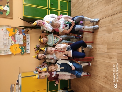 Dziewczynki z klasy I wraz se swoją panią Lillą Siedlecką przygotowały dla jedynego chłopca szereg niespodzianek. Na początek Oliwier został mianowany królem klasy a każda koleżanka - dama dworu złożyła mu serdeczna życzenia. Oliwier otrzymał koronę, a dziewczynki kolorowe czapeczki. Wszystkie dzieci otrzymały też upominki: słodkie jaka z niespodzianką, soczki oraz ołówki z kolorową gumką w kształcie zwierzątek. Potem dziewczynki rozwiązywały różne zagadki, a z odgadniętych liter ułożyły imię swojego kolegi OLIWIER. Następnie wykonały dla Oliwiera piękne prace plastyczne oraz śpiewały piosenki i recytowały wiersze. Nie zabrakło również wesołej zabawy przy muzyce. Był to bardzo udany dzień.