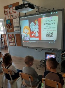 W przeddzień „majówki” obchodziliśmy w oddziale przedszkolnym we Wroczynach 230. rocznicę uchwalenia Konstytucji 3 Maja. Z tej okazji przedszkolaki m.in. obejrzały tematyczną prezentację multimedialną, własnoręcznie wykonały flagę oraz plakat z symbolami narodowymi.