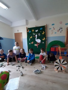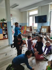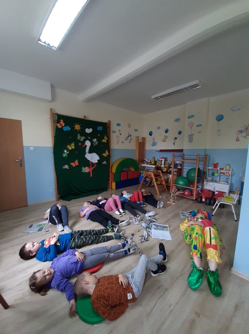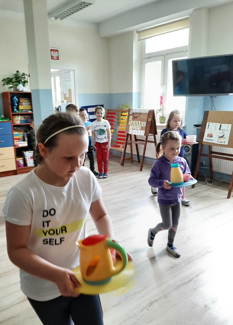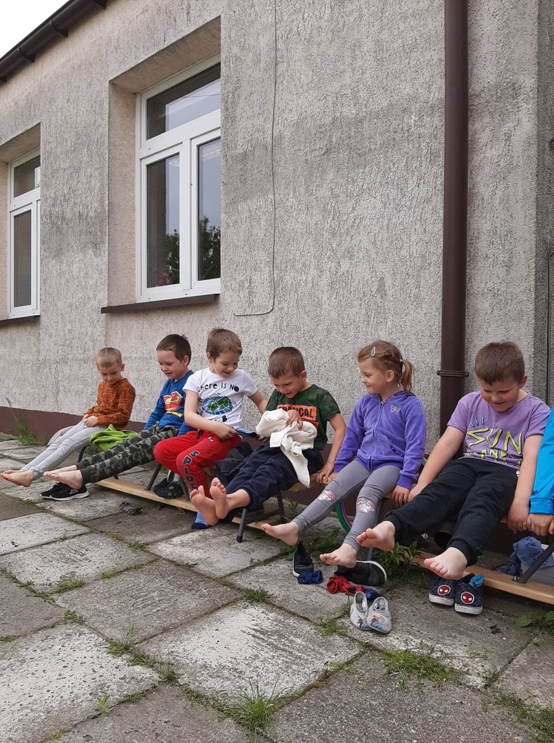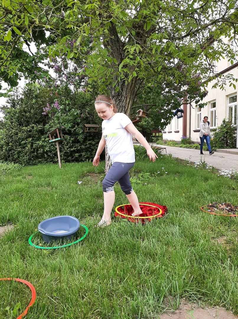 Wychowawczyni p. Dorota Gralak przygotowała konkurencje sportowe, ścieżkę sensoryczną, bańki mydlane.