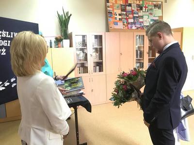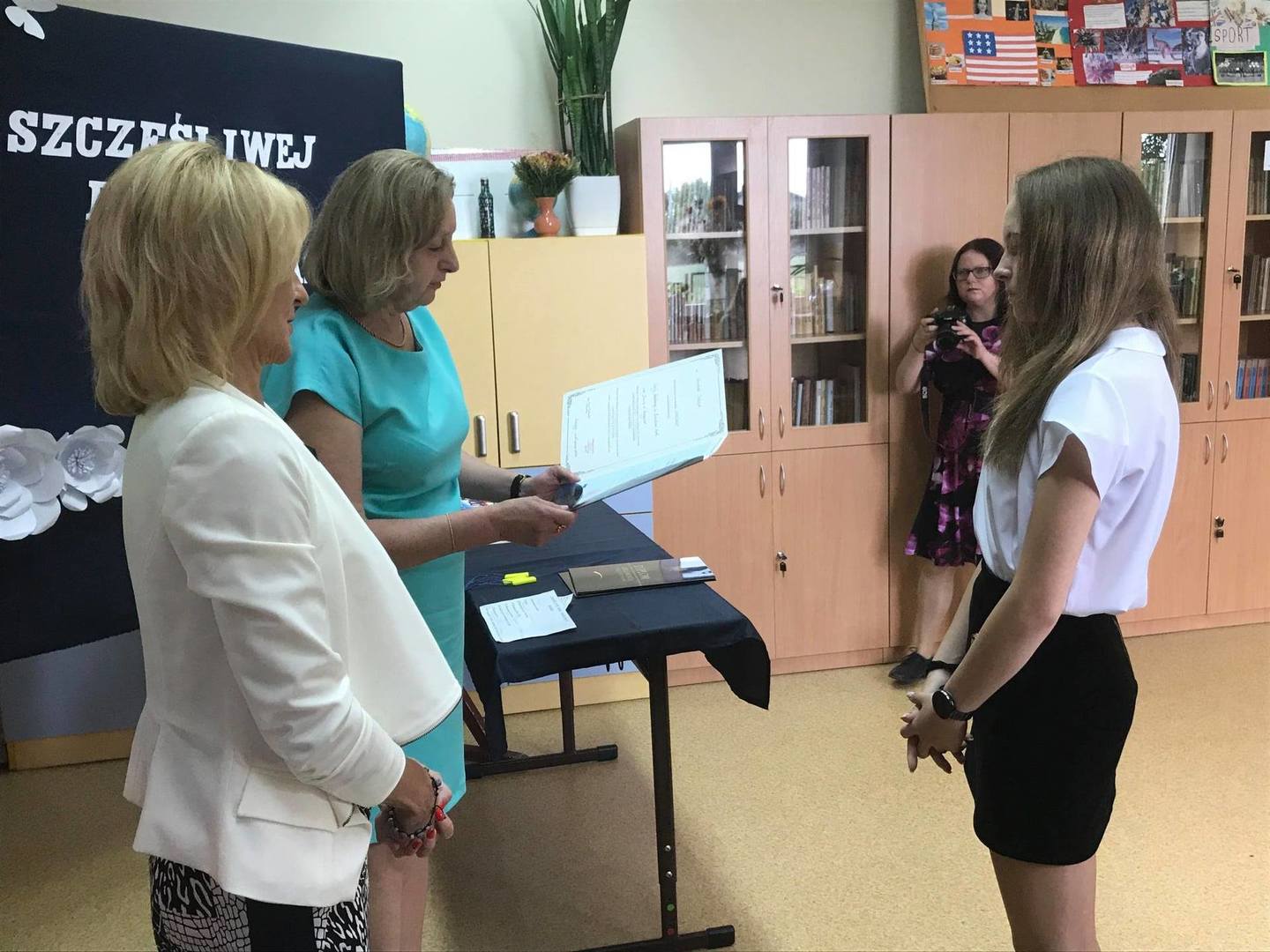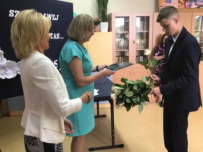 Następnie głos zabrała: Wójt Gminy Kutno Justyna Jasińska. która przekazała podziękowania i życzenia dla Uczniów, Rodziców oraz Dyrektora, Nauczycieli i pozostałych Pracowników. Wręczone zostały listy gratulacyjne rodzicom uczniów, którzy dzięki bardzo dobrym wynikom w nauce otrzymali stypendia. Ósmoklasiści natomiast otrzymali od Pani Wójt upominki, które zawsze będą im przypominać o gminie Kutno.