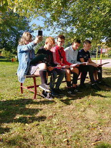 W słoneczne piątkowe przedpołudnie na boisku Szkoły Podstawowej we Wroczynach odbyła się X, jubileuszowa, edycja Narodowego Czytania. Tegoroczna lektura - utwór Moralność pani Dulskiej autorstwa Gabrieli Zapolskiej to jeden z najsłynniejszych polskich dramatów, który od ponad 100 lat śmieszy i skłania do refleksji kolejne pokolenia czytelników i widzów.
