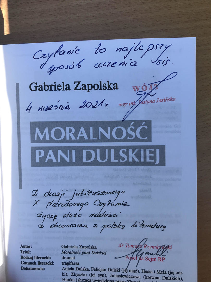Wszyscy młodzi uczestnicy akcji Narodowego Czytania zostali nagrodzeni pamiątkowymi egzemplarzami książki z dedykacją od Posła Tomasza Rzymkowskiego i Wójt Gminy Kutno Pani Justyny Jasińskiej.