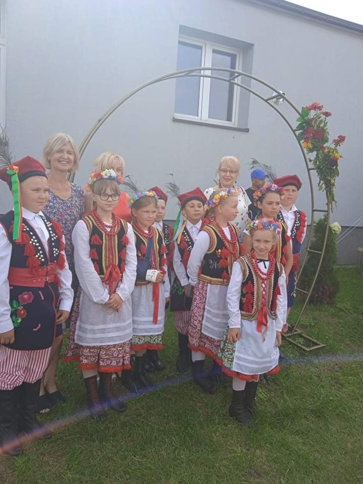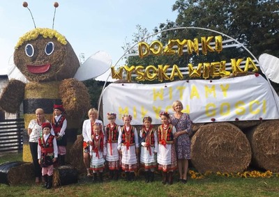 Uczniowie Szkoły Podstawowej we Wroczynach mieli zaszczyt wziąć czynny udział w Gminnych Dożynkach w Wysokiej Wielkiej. Młodzi artyści piosenką, wierszem i tańcem zaprezentowali repertuar artystyczny. Trzeba przyznać, że prezentacja spodobała się widowni, która gromkimi brawami podziękowała za wspaniały występ.