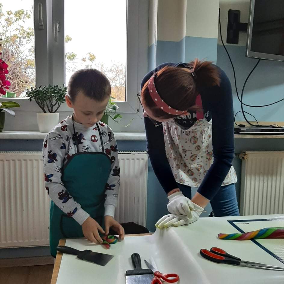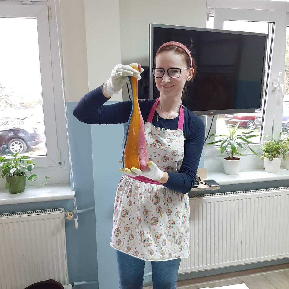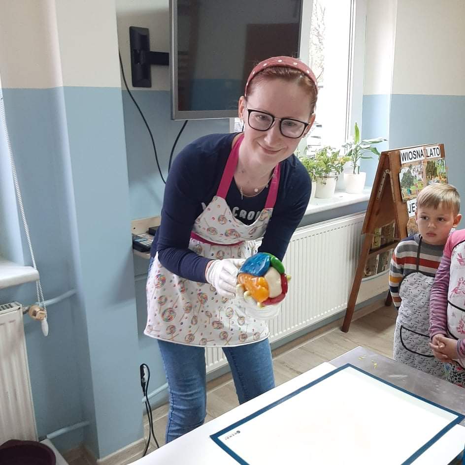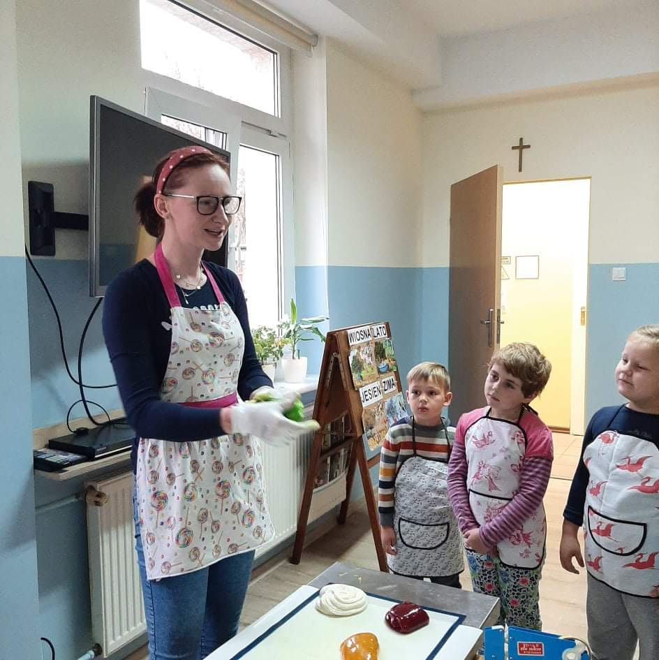 Druga część naszego spotkania to zajęcia praktyczne podczas których dzieci robiły lizaki z masy karmelowej. Każdy lizak był inny, wykonany własnoręcznie przez dzieci. Były świderki, kotki, kółeczka, serduszka, ślimaczki. Teraz pozostała tylko degustacja 😃😋🍭 lizaków. Pozdrawiamy Panią Karolinę i życzymy powodzenia w tworzeniu słodkich smakołyków 😊🥰