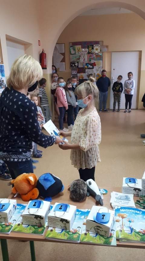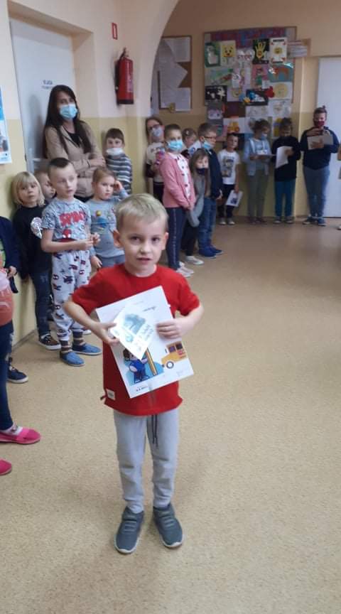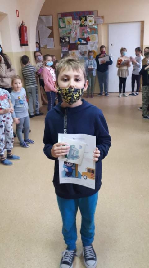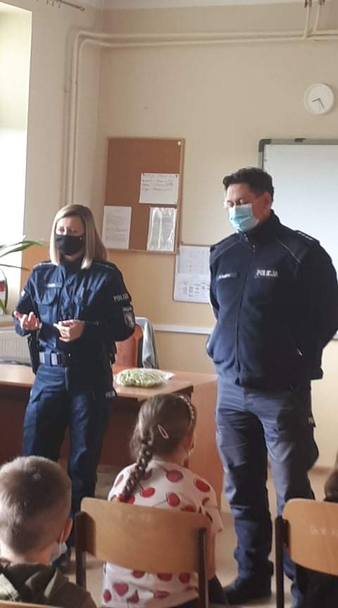Nasi gości zwrócili uwagę na niebezpieczeństwa, jakie mogą czyhać na dzieci na drodze. Ponadto podkreślili, jak ważną rolę pełnia elementy odblaskowe. Dzieci odpowiadały aktywnie na zadawane pytania, wykazały się dobra wiedzą z zakresu bezpieczeństwa w ruchu drogowym. W nagrodę za aktywny udział uczniowie otrzymali znaczki odblaskowe.