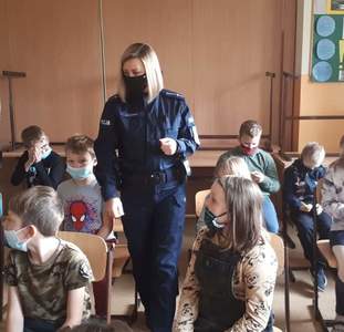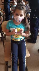 Najmłodsze dzieci miały okazje porozmawiać z policjantami o zachowaniu bezpieczeństwa w drodze do i ze szkoły, o bezpiecznym przechodzeniu przez ulicę, prawidłowym zachowaniu się na przejściach dla pieszych oraz o bezpiecznym zachowaniu się w oczekiwaniu na autobus szkolny, jak również o ostrożności podczas wsiadania i wysiadania z autobusu.