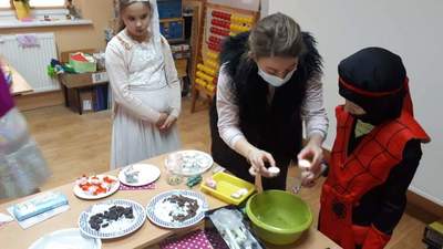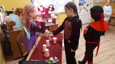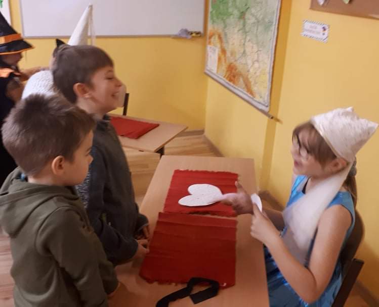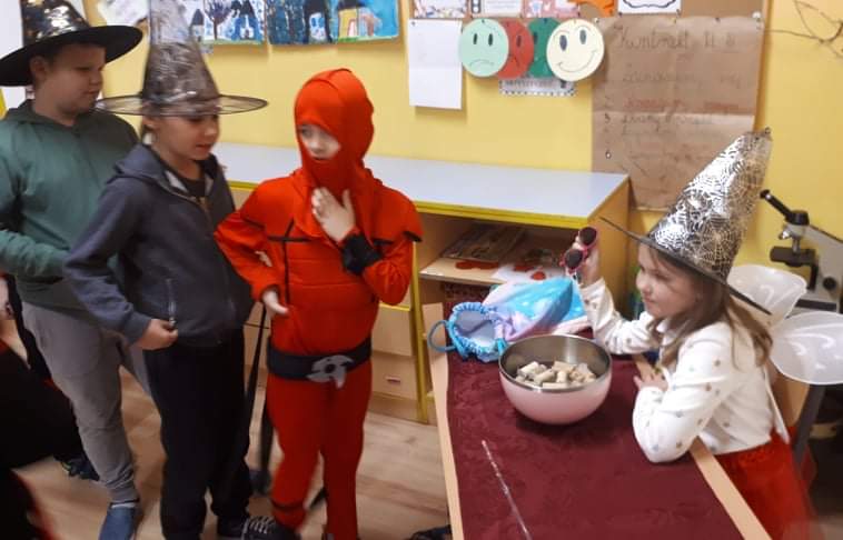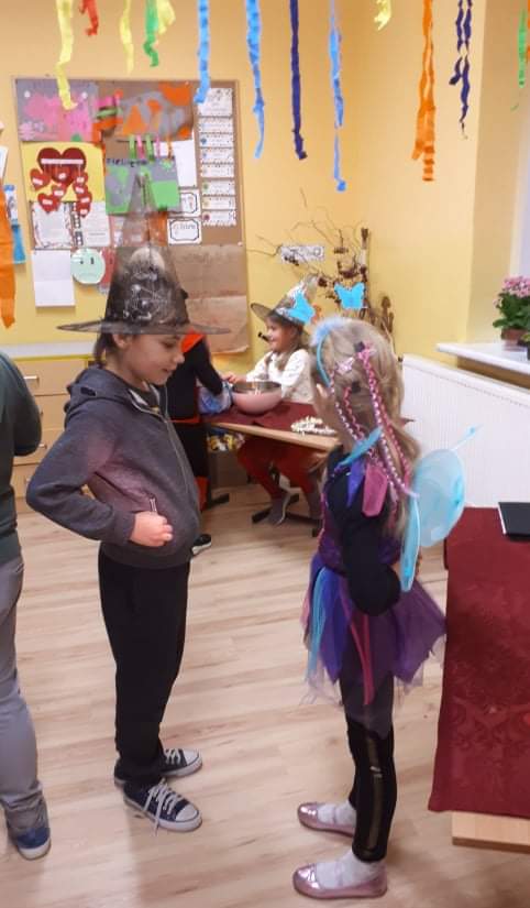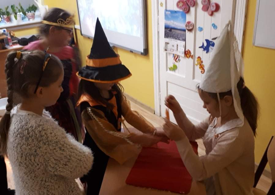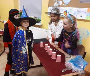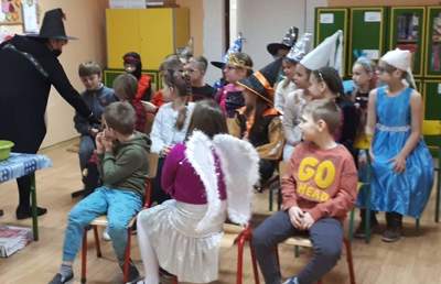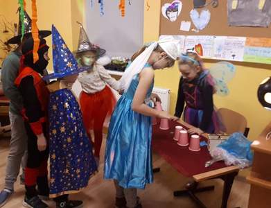 Wychowawcy wspólnie zorganizowali andrzejkową zabawę, na której dzieci bawiły się w strojach z bajek. Andrzejkowe wróżby prowadziły wróżki z klasy III. Dzieci mogły się od nich dowiedzieć, co czeka je w przyszłości. Oczywiście każde dziecko wiedziało, że wróżba to magia i nie trzeba w nią wierzyć…